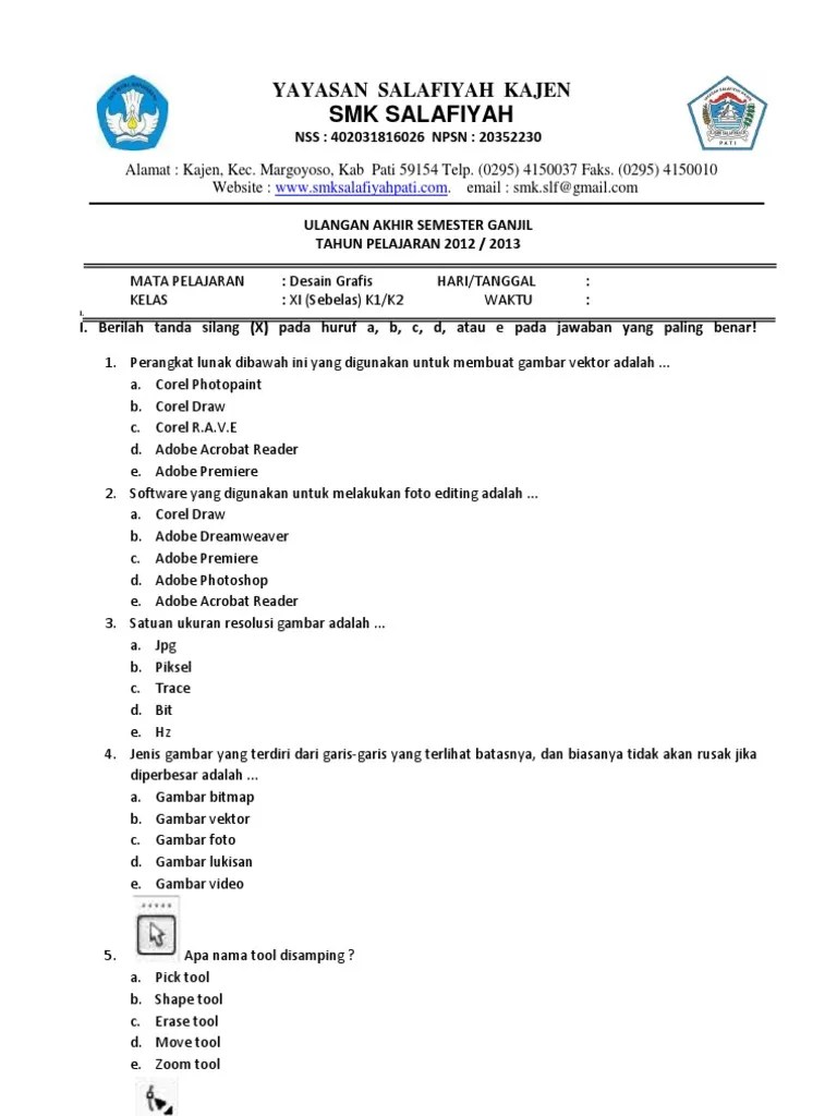 Soal latihan desain grafis beserta jawabannya pg dan essay Dasar desain grafis kelas : View soal dasar desain grafis kelas x smk bm2.docx from english la 45 at i̇nönü university. Salah satu software pengolah gambar yang mampu bekerja dalam typ. Desain grafis juga merupakan salah satu mata .