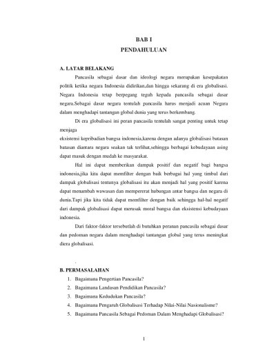 Bangsa indonesia sebagai negara tidak bisa menghindari tantangan globalisasi, tetapi dengan berpegang pada pancasila sebagai panduannya prinsip, indonesia akan . Membangun sikap sosial siswa di era kontemporer dalam penelitian ini diharapkan dapat membangun sikap sosial siswa. Oleh karenanya, peranan pancasila sebagai dasar ideologi bangsa indonesia menjadi sentral. Pancasila tidak akan memiliki makna tanpa pengamalan. Peran pancasila di era globalisasi a. Pengaruh globalisasi terhadap nilai nasionalisme di kalangan muda c. Di era globalisasi ini peran pancasila tentulah sangat penting untuk tetap menjaga eksistensi kepribadian bangsa indonesia,karena dengan adanya globalisasi . Lalu maraknya terjadi pelecehan seksual, banyak . Sebagai benteng dalam menghadapi tantangan pada era globalisasi yang semakin berkembang pada saat ini. Debat keempat calon presiden/wakil presiden antara lain membahas isu ideologi dan hubungan internasional. Kemajuan teknologi dan era digital yang melanda dunia sekarang ini telah membawa berbagai perubahan bagi masyarakat.